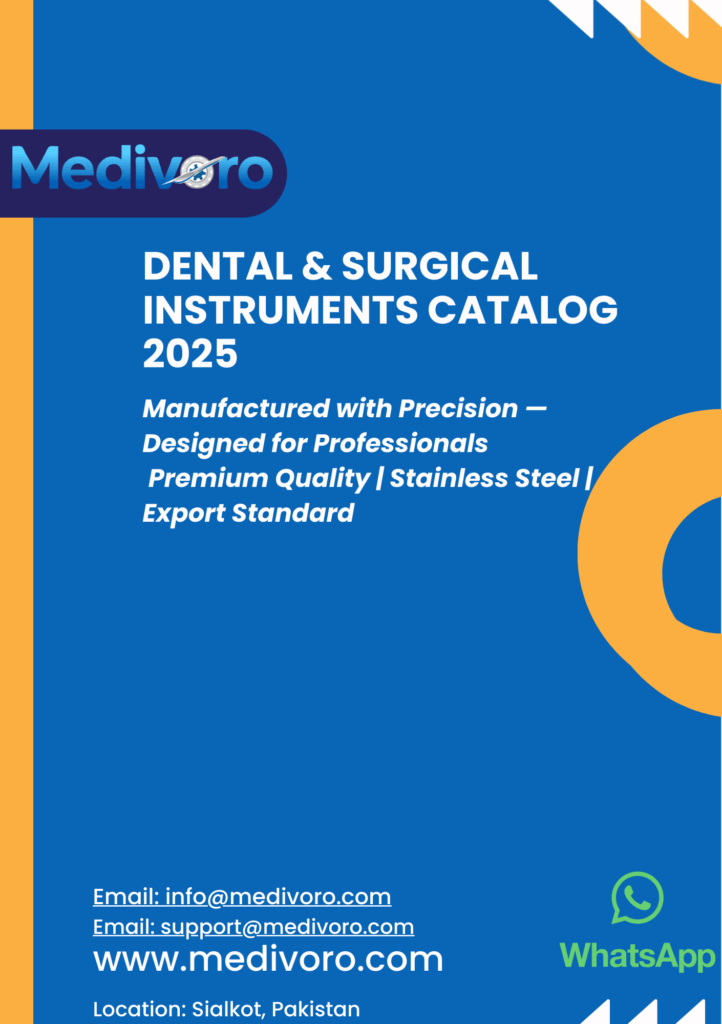 Our Dental Instruments Catalog features high-quality instruments manufactured for dental clinics, distributors, and private-label buyers worldwide. Suitable for routine procedures and specialized dental applications.